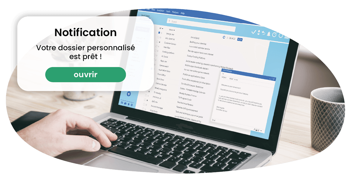 Un dossier personnalisé de 10 pages dans votre boîte email et par WhatsApp, avec votre programme recommandé et vos résultats projetés.